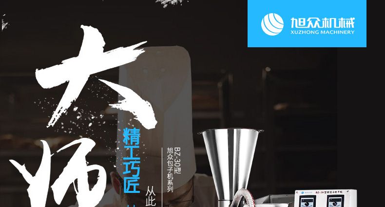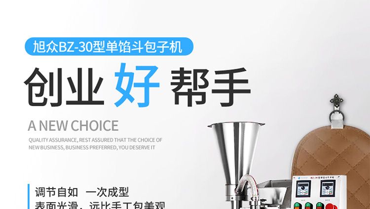 ◆ 旭眾牌BZ-30全自動小型包子機(jī)采用雙變頻控制,面、餡大小調(diào)節(jié)自如、使用方便。產(chǎn)品一次成型,所出產(chǎn)品外形大小統(tǒng)一、表面光滑、花紋整齊,遠(yuǎn)比手工包美觀。