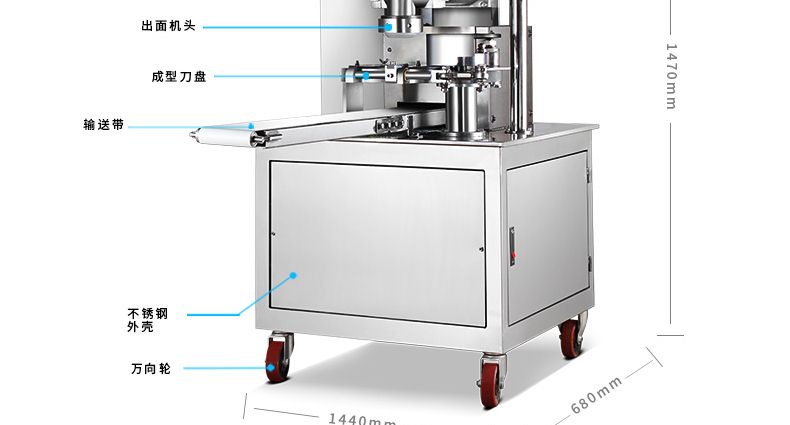 ◆ 結(jié)構(gòu)合理,成型、進(jìn)餡、進(jìn)面與控制面板均由獨(dú)立電機(jī)帶動不易發(fā)生連帶故障,且維修及拆裝清洗方便。