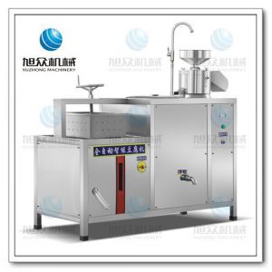 旭眾智能豆腐機(jī)專業(yè)生產(chǎn)數(shù)種豆?jié){制品,穩(wěn)定高效,采用磨漿分離機(jī)和煮漿機(jī),出品率高于其它設(shè)備,擁有自動控制系統(tǒng),還增加數(shù)碼溫度控制儀,對煮漿隨時進(jìn)行監(jiān)控,同時對不同產(chǎn)品所需溫度自行設(shè)定,當(dāng)煮漿達(dá)到設(shè)定溫度時,具有自動提示及報警功能;整機(jī)采用不銹鋼材質(zhì)制作,質(zhì)量卓越,占地面積小,安裝簡單,工藝先進(jìn),一臺設(shè)備只需一人操作,省時、省力、省工。