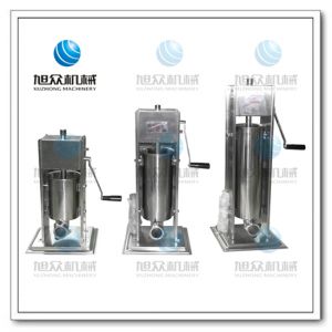 旭眾牌手搖灌腸機接觸食物的部位全部采用優(yōu)質(zhì)不鋼筋材料,衛(wèi)生、安全;立式設計,外形美觀、大方。料筒折裝快速,清洗方便;全新的齒輪系統(tǒng),使送料推力,快速、輕便地釋放提升推進活塞,工作效率高;此灌腸機是家用制作香腸或食堂、餐館、酒店專業(yè)制作香腸的理想產(chǎn)品。