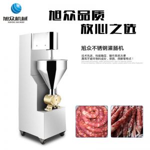 旭眾牌SZ-200灌腸機(jī)使用敞開式不銹鋼料斗,適用于連續(xù)添加物料;與灌裝手接觸部件全部采用優(yōu)質(zhì)不銹鋼制作以防生銹;該機(jī)自動(dòng)化程度高,技術(shù)先進(jìn)、性能穩(wěn)定、操作簡便、工作效率高,具有不破壞物料成份,保質(zhì)、保鮮等特點(diǎn)。