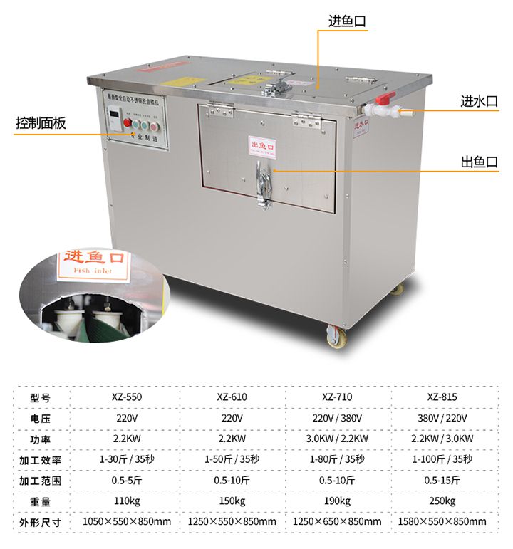 | 型號(hào) | XZ-550去魚鱗機(jī) | XZ-610去魚鱗機(jī) | XZ-710去魚鱗機(jī) | XZ-815去魚鱗機(jī) |