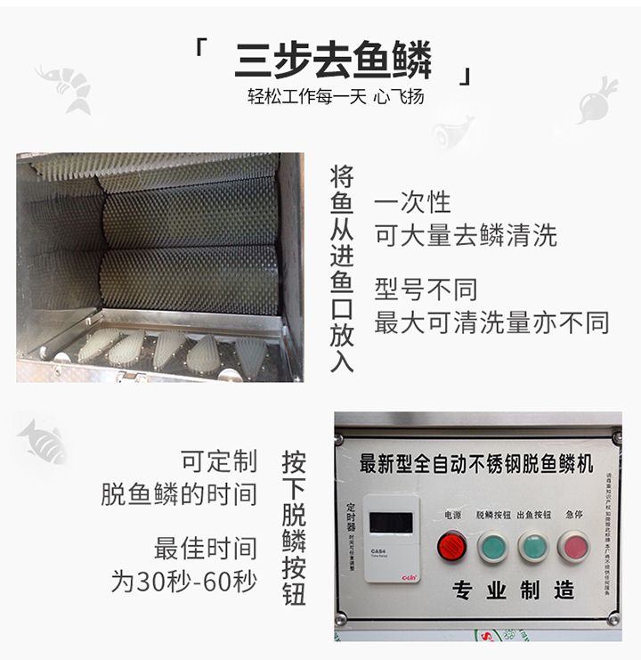 3.功能強(qiáng)大,直接實(shí)現(xiàn)去魚鱗和殺魚的工藝,生產(chǎn)效率高,產(chǎn)量大。