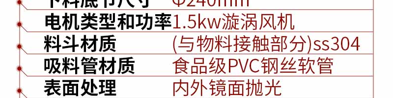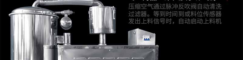 真空上料機(jī)由真空泵(無油、無水)、不銹鋼吸料咀、輸送軟管、PE過濾器(或316L不銹鋼過濾器)、壓縮空氣反吹裝置、氣動放料門裝置、真空料斗和料位自動控制裝置等組成,整套系統(tǒng)設(shè)計合理、制造精美。
