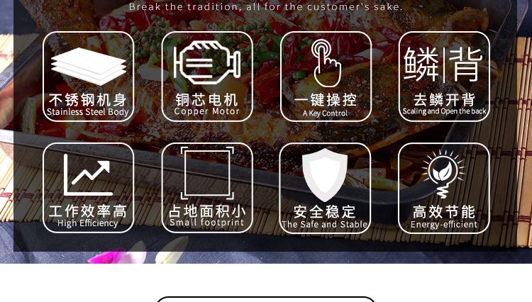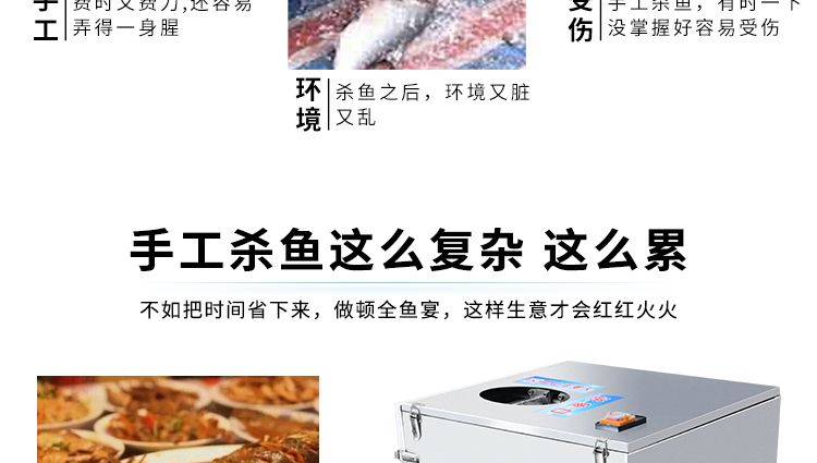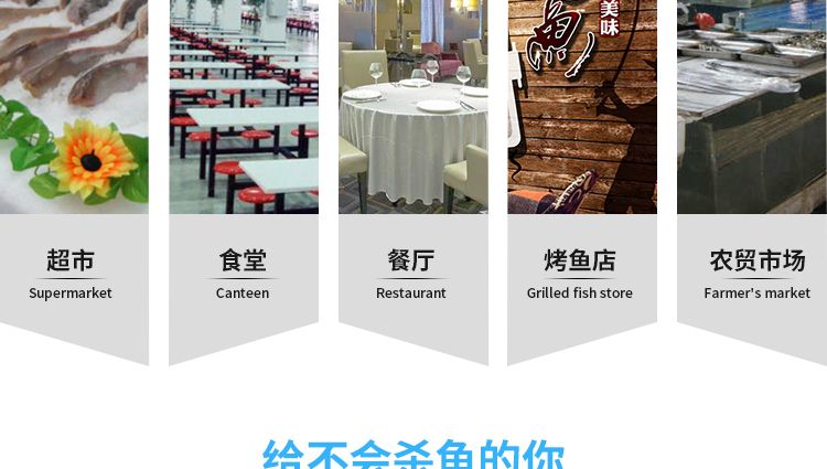 本設(shè)備為魚(yú)類(lèi)食品加工廠(chǎng),大型超市,機(jī)關(guān)食堂,海鮮市場(chǎng),農(nóng)貿(mào)市場(chǎng),烤魚(yú)店,酸菜魚(yú)店,火鍋店等餐飲酒店帶來(lái)高工作效率。