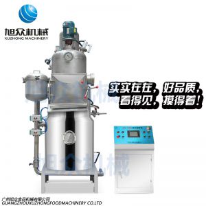 ●降低油脂劣變程度:炸用油的劣化包括氧化、聚合、熱分解,而以水或水蒸汽與油接觸產(chǎn)生水解為主。在真空油炸過(guò)程中,油處于負(fù)壓狀態(tài),溶于油脂中的氣體很快大量逸出,產(chǎn)生的水蒸汽壓力較小,而且油炸溫度低,因此,油脂的劣化程度大大降低。