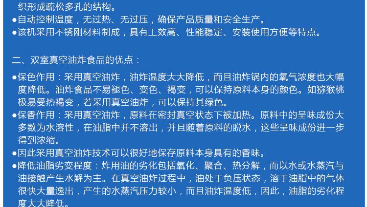 雙室真空油炸機(jī)特點(diǎn)