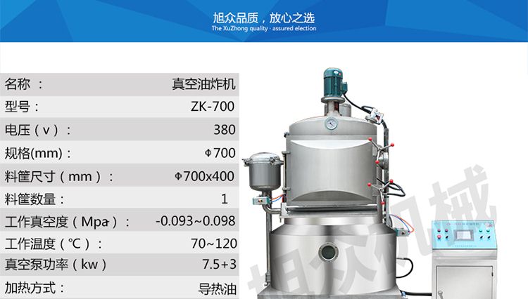 ZK-700真空油炸機,適用于水果類、蔬菜類、干果類、水產(chǎn)品機畜禽肉類等。自動控制溫度,無過熱、無過壓,確保產(chǎn)品質(zhì)量和安全生產(chǎn)。